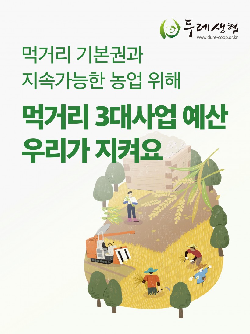 [긴급] 먹거리 3대사업 예산, 우리가 지켜요! > 두레소식