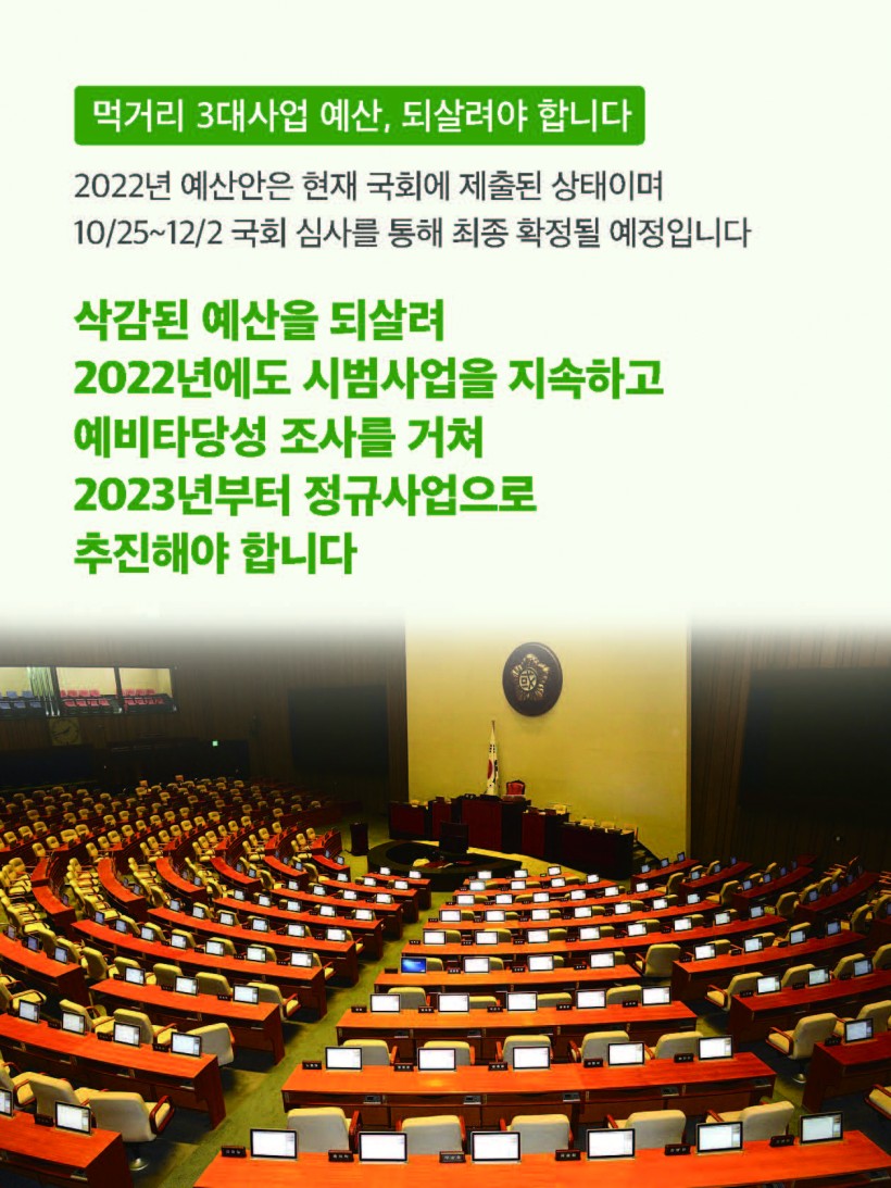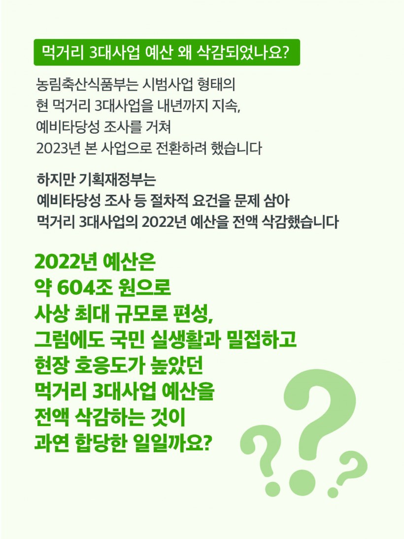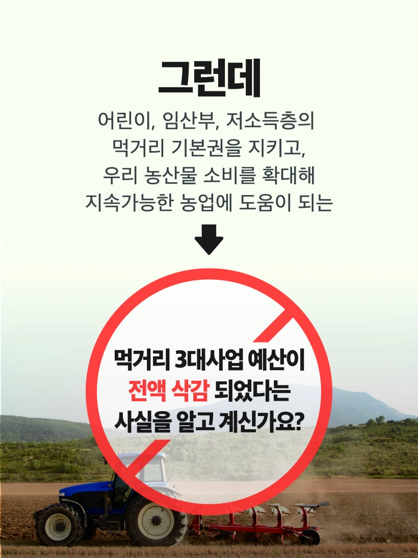 [긴급] 먹거리 3대사업 예산, 우리가 지켜요!