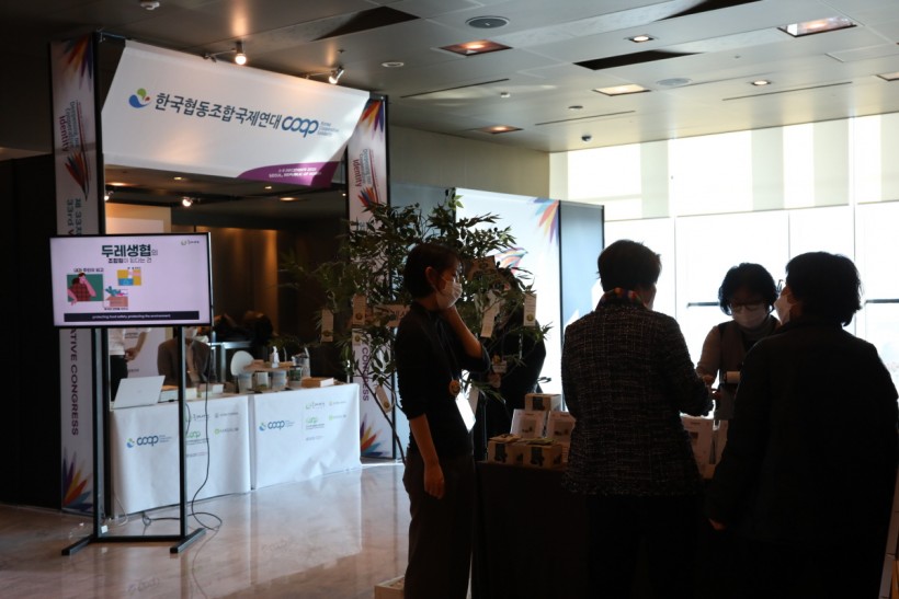 12월 2일에는 두레생협이 한국협동조합국제연대 부스 운영을 맡아 두레생협을 전 세계 협동조합 관계자에게 소개하고 생활재도 선보였습니다.