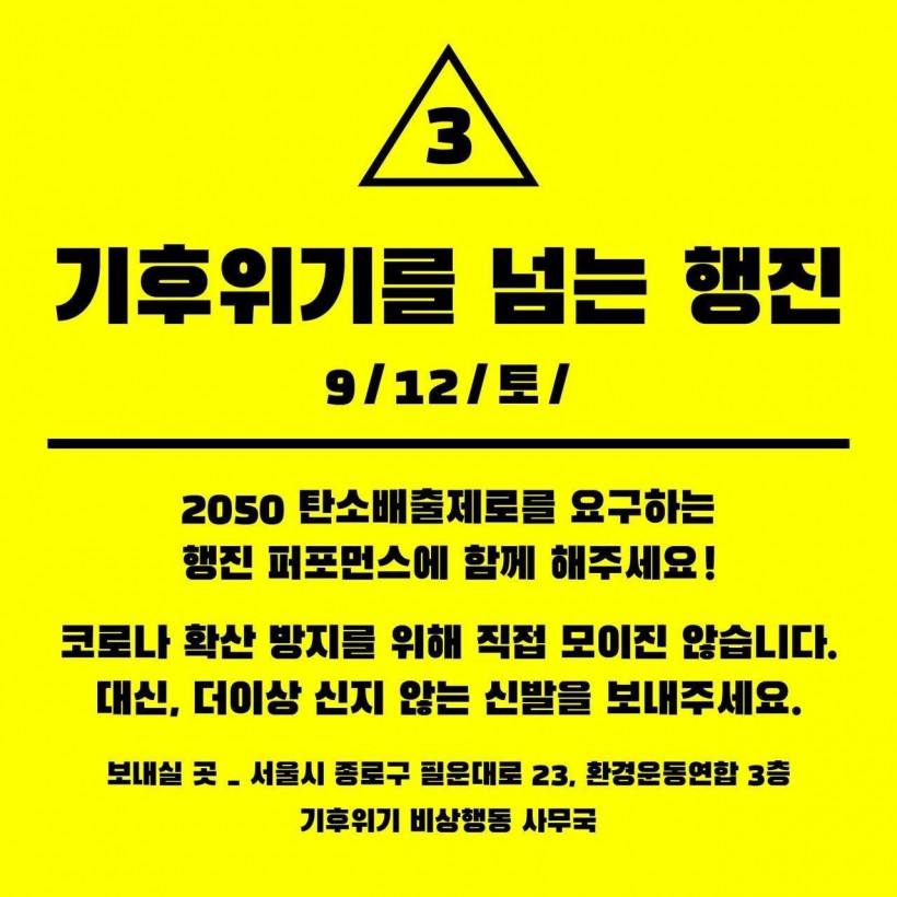 보내실 곳: 서울시 종로구 필운대로23 환경운동연합 3층 기후위기비상행동 사무국 (9월 10일까지)