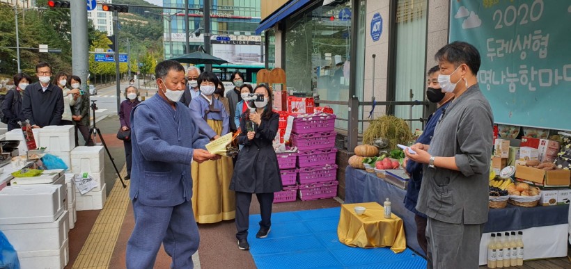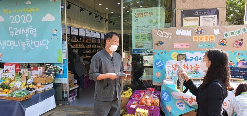 지난 10월 12일, 주민두레생협 서판교점에서 <2020 생명나눔한마당> 개막식이 열렸습니다. 매년 조합원과 생산자의 만남의 장이 되었던 생명나눔한마당이, 올해는 코로나 19로 인해 사회적 거리두기 실천 차원에서 각 매장과 온라인에서 진행되었습니다.