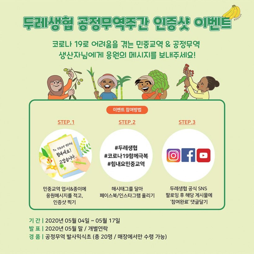 이벤트 하나, 2020 두레생협 공정무역주간 캠페인 인증샷 이벤트