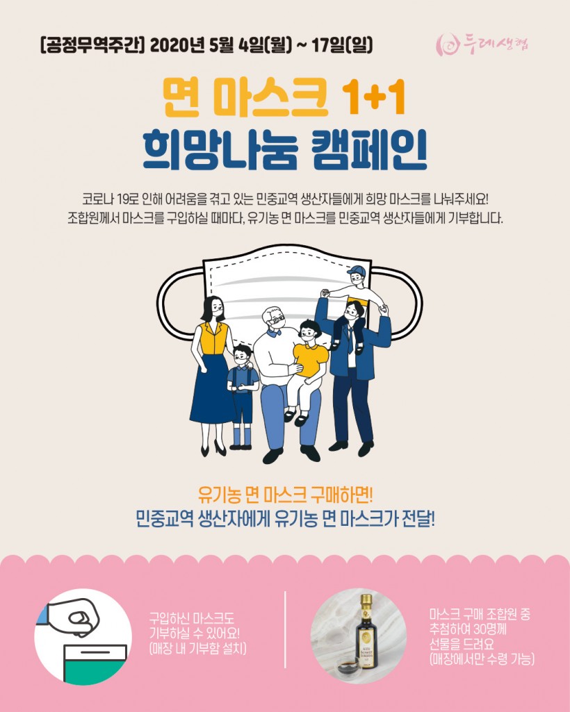 이벤트 둘, 면 마스크 1+1 희망나눔 캠페인