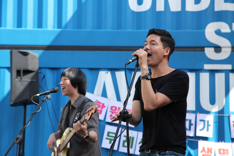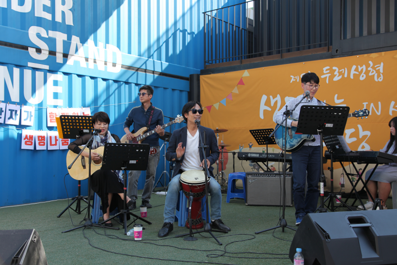 오후에는 인디밴드를 비롯하여 생산자 및 조합원 공연이 이어졌습니다. 강원도 화천에서 올라온 젊은 친환경 농부 3인방으로 구성된 두레콰이어의 멋진 중창과 아름다운 화음으로 멋진 실력을 뽐낸 울림두레생협 조합원 합창단 선물의 선율까지 두레생협 생산자와 조합원이 만들어내는 멜로디와 환경과 사회를 노래하는 인디밴드들의 개념공연으로 행사 분위기가 후끈 달아올랐습니다.