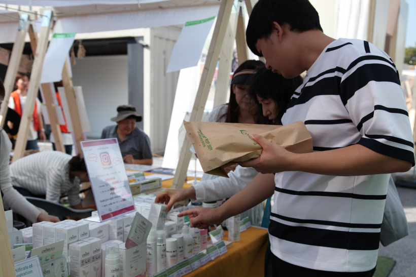 생산자 부스에서도 생산자들이 땀 흘려 가꾸고 만들어낸 생활재들이 시민들의 많은 관심을 받으며 판매되었습니다. 두레생협연합회에서도 전시 부스 운영, 가입이벤트 및 인증샷 이벤트를 실시하여 더 많은 시민들이 두레생협 조합원이 되어, 이렇게 좋은 생활재를 계속 이용할 수 있도록 독려하였습니다. 구기자한과 판매도 열심히!!