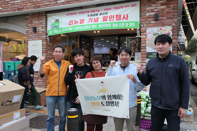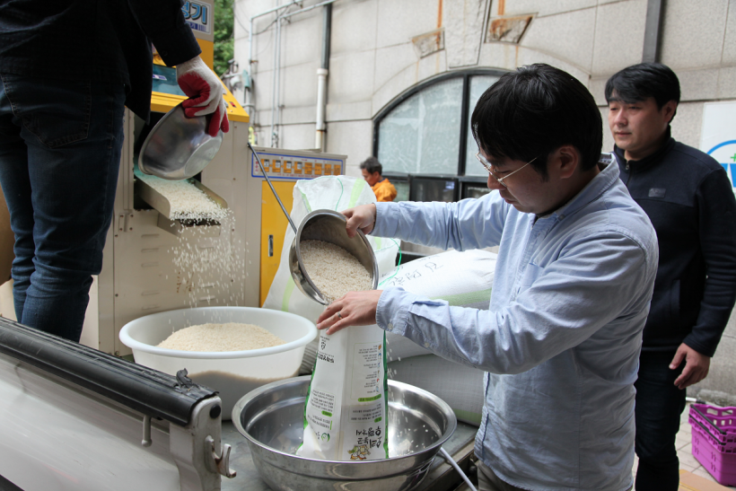 올해 수확한 햅쌀 홍보를 위해, 청년 농부가 직접 조합원께 갓 도정한 쌀을 판매하는 행사가 열렸습니다. 이른 새벽부터 트럭을 타고 강원도 화천에서 출발한 청년농부들이 바로 도정한 따끈따끈한 쌀을 조합원 여러분께 선보였습니다.