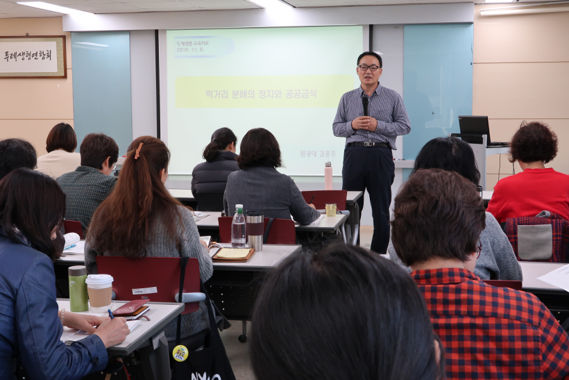 지난 11월 8일 두레생협연합회 5층 강의실에서 <2019 식생활강사양성 고급과정>이 열렸습니다. 총 27명이 신청한 이번 과정은 이론부터 실습까지 현장에서 바로 활용할 수 있는 교육들을 빠짐없이 담았습니다.