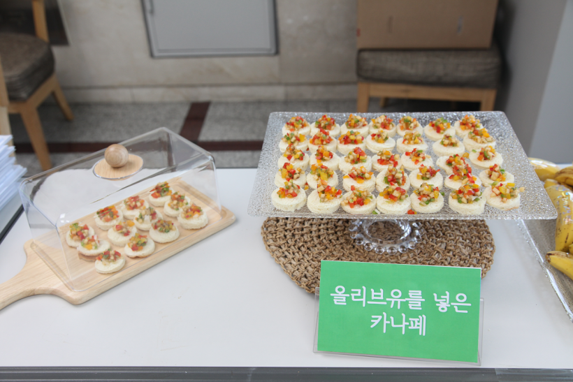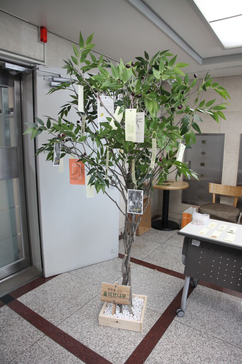 매년 5월 둘째 주, 공정무역주간을 맞이하여, 민중교역 생산자 초청강좌를 개최했습니다. 팔레스타인에 평화를 기원하며 올리브나무에 소원지를 거는 이벤트와 민중교역 생활재인 올리브유와 발랑곤바나나가 들어간 카나페와 발랑곤바나나 시식도 함께 진행했습니다. 특히 레시피를 알려달라는 요청이 쇄도할 만큼 정성껏 준비한 카나페에 대한 반응이 좋았습니다^^