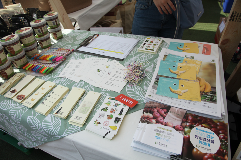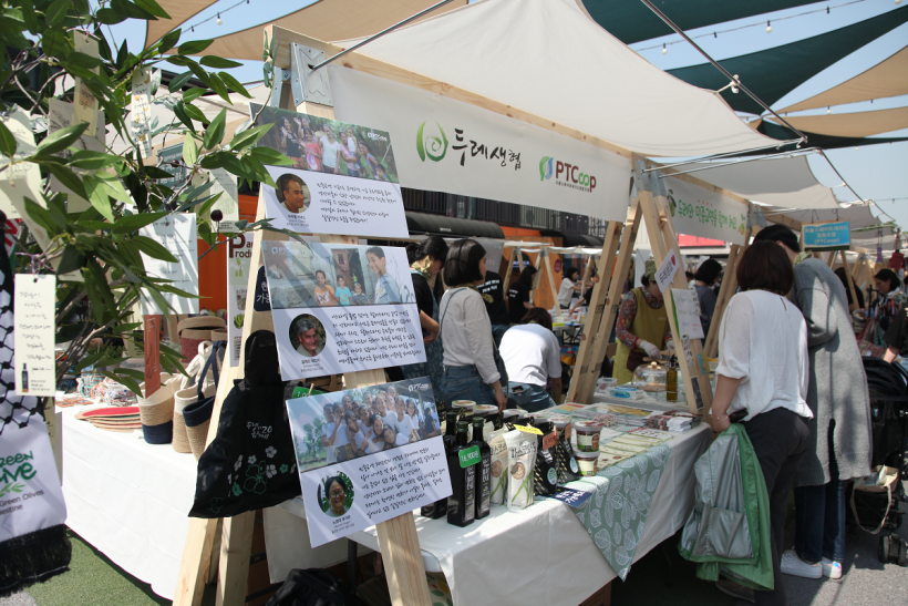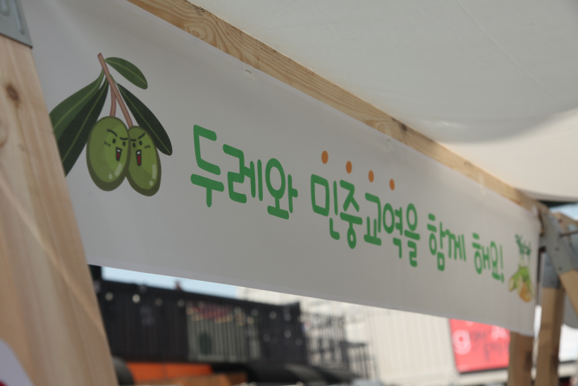 두레생협에서는 모든 공정무역, 민중교역 생산자들을 응원하는 메시지를 남기는 캠페인과 올리브유를 활용한 카나페 시식 등을 준비하였습니다. 응원 캠페인에 참여한 분들에게는 정성이 듬뿍 들어간 두레 민중교역 스티커를 1장씩 선물로 드렸습니다.