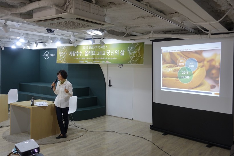 오후에는 민중교역 컨퍼런스가 진행되었습니다. PTCoop의 2018년 활동과 2019년 계획에 대한 발표에 이어, 함께 하고 있는 4개 생협(두레생협, 대학생협, 한살림, 행복중심) 별로 민중교역 관련 교류 및 경과와 앞으로의 과제에 대한 발표를 진행하였습니다. 두레생협에서도 2018년 교류 활동과 더불어 민중교역을 알리기 위해 펼친 노력들을 소개하였습니다.