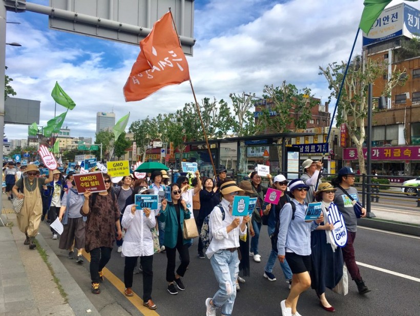 올해는 ‘청년 농부와 함께 몬산토 반대를 외치다’라는 주제로 동대문역사문화공원역 인근에서 '얼굴이 보이는 농부시장' 장터와 Non-GMO 홍보부스에서 시민들에게 GMO의 위험성을 널리 알리고, 동대문에서 안국역까지 시민행진을 진행했습니다. 두레생협에서도 김영향 회장님과 각 회원생협 임직원, 두레교육활동센터가 참여하여 다 같이 GMO 반대를 외쳤습니다.