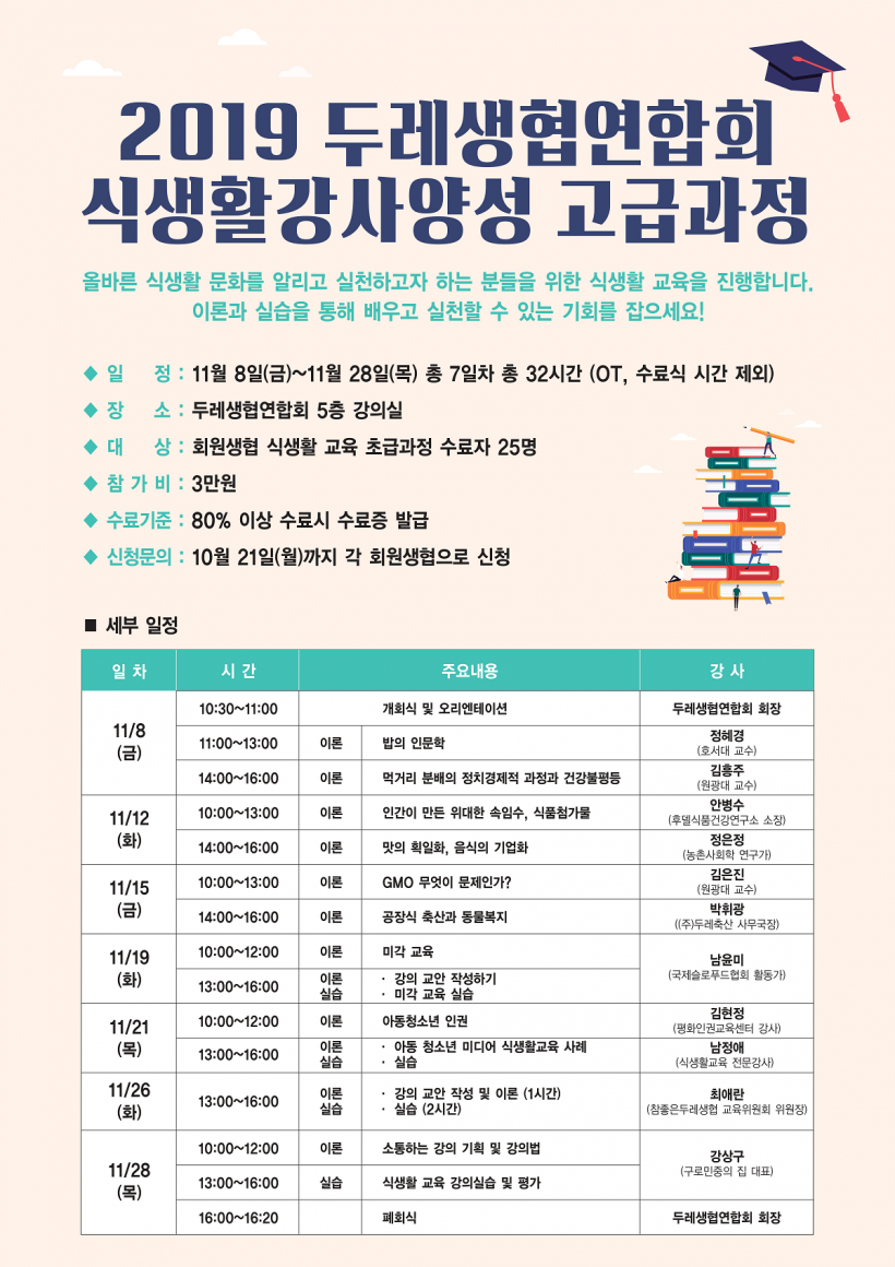 [공지] 2019 식생활강사양성 고급과정 > 두레소식
