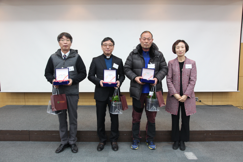 이어서, 지난 해 두레생협연합에 기여한 회원생협 및 생산자에 대한 감사패 전달식을 진행하였습니다. 회원생협에서는 울림두레생협, 바른두레생협이 수상하였으며, 생산자중에서는 강원유기농, 우리마을, 그리고 안타깝게 우리 곁을 떠나신 故 오형옥 생산자(대리수상 : 김선재 생산자)께 전달되었습니다. 故오형옥 생산자를 생전 모습을 담은 영상을 보며, 함께 추모하는 시간도 가졌습니다.