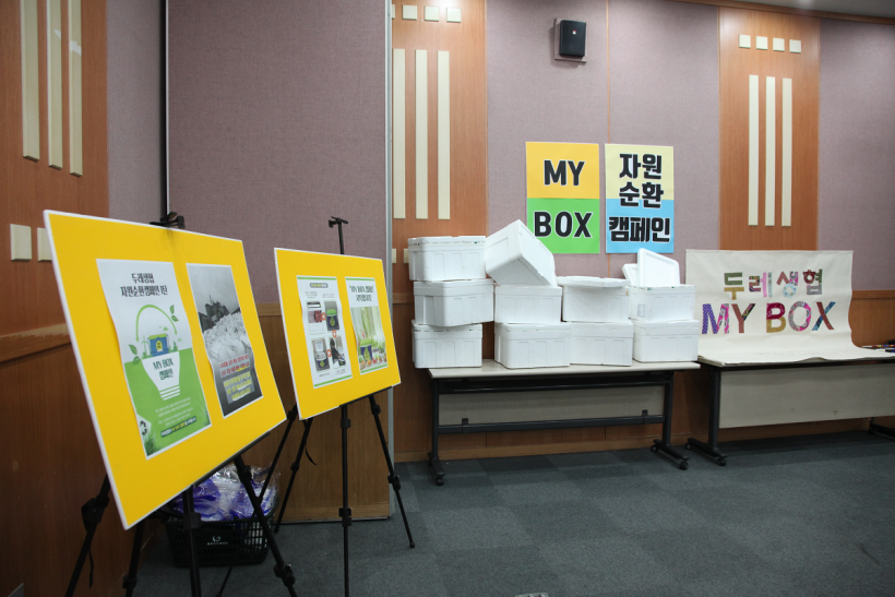 한편, 이번 대의원총회에서는 두레생협에서 자원순환캠페인의 일환으로 시작하는 MY BOX 캠페인을 알리는 자리도 마련되었습니다. 두레생협의 MY BOX 캠페인은 쇼핑몰이나 전화주문으로 가정으로 생활재를 공급 받을 때, 사전 신청한 조합원을 대상으로 스티로폼 상자 대신 조합원이 내놓은 아이스박스에 생활재를 담는 캠페인입니다. 조합원 여러분의 많은 참여 부탁드립니다.