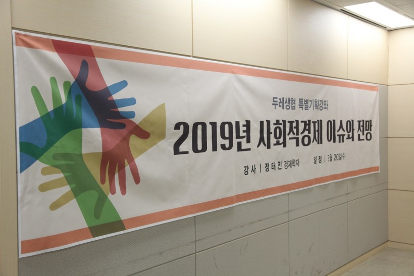봄의 불청객 미세먼지와 반가운 봄비가 교차하던 지난 3월 20일(수), 올해 첫 기획강좌가 열렸습니다. 이번 강좌는 [2019년 사회적경제 이슈와 전망]이라는 주제로 경제학자이자 연구자이신 정태인 박사님을 모시고 진행하였습니다.