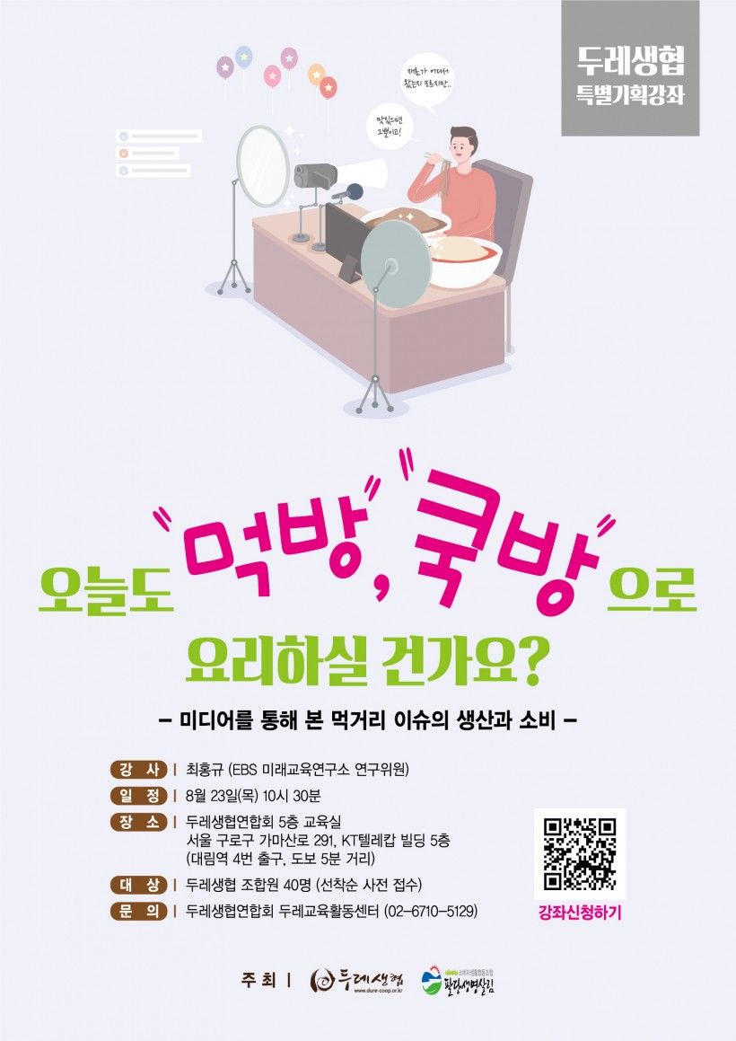 두레생협 특별강좌 <오늘도 먹방,쿡방으로 요리하실 건가요?>