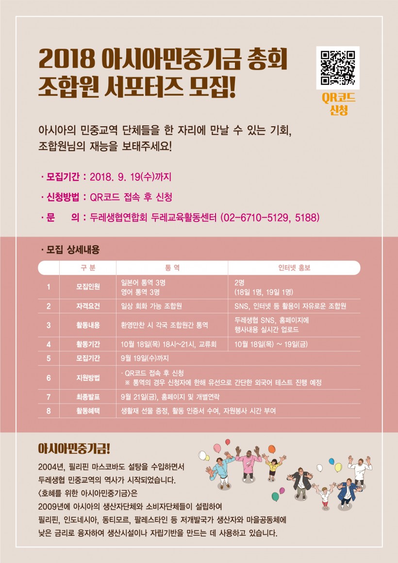 2018 아시아민중기금 총회 조합원 서포터즈를 모집합니다!