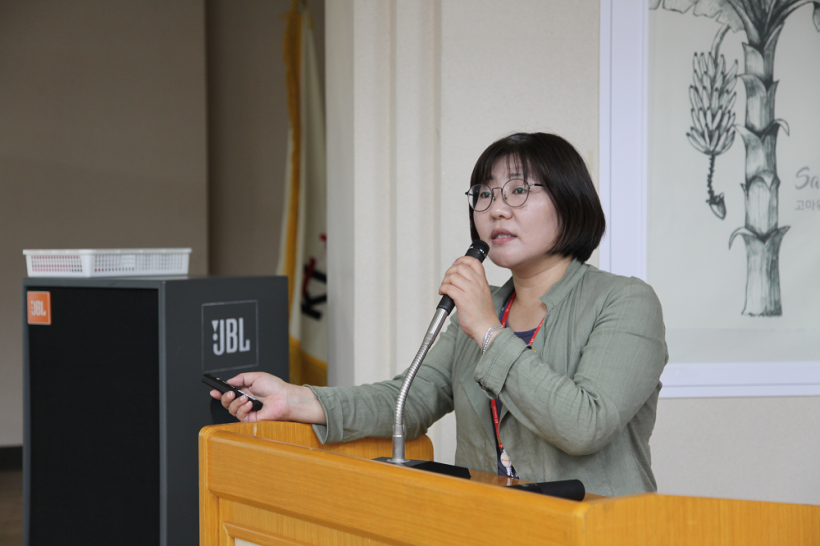 곧바로 가멜라 대표의 발표가 이어졌습니다. 가멜라 대표가 활동하고 있는 필리핀 민다나오 섬은 다국적 기업들이 플랜테이션 방식으로 바나나를 대량생산하는 지역 중 하나입니다. 처음에는 다국적 기업들이 농약을 마구잡이로 살포하여 땅과 지하수를 오염시키는 것을 막기 위한 활동을 펼쳤다고 합니다. 그러자 플랜테이션 농장에서 낮은 임금을 받으며 일하는 사람들이 그 일자리마저 잃을까 우려하며, 가멜라 대표의 활동에 반대하는 모습을 보면서, 무조건적인 반대가 아니라 빈곤을 탈출할 수 있도록 대안을 제시해야겠다는 생각을 갖게 되었다고 합니다. 그래서 토종인 발랑곤바나나를 유기농으로 키울 수 있는 기반을 마련하기 위해 노력하기 시작했습니다.