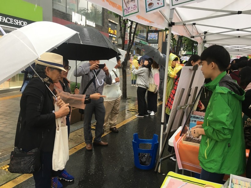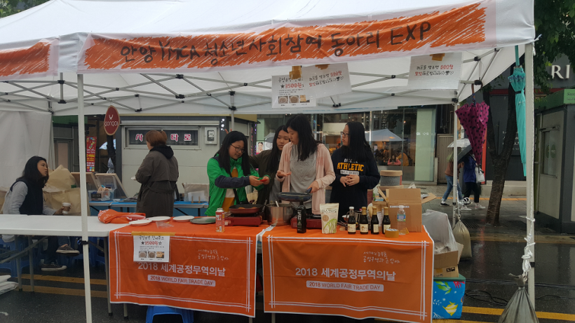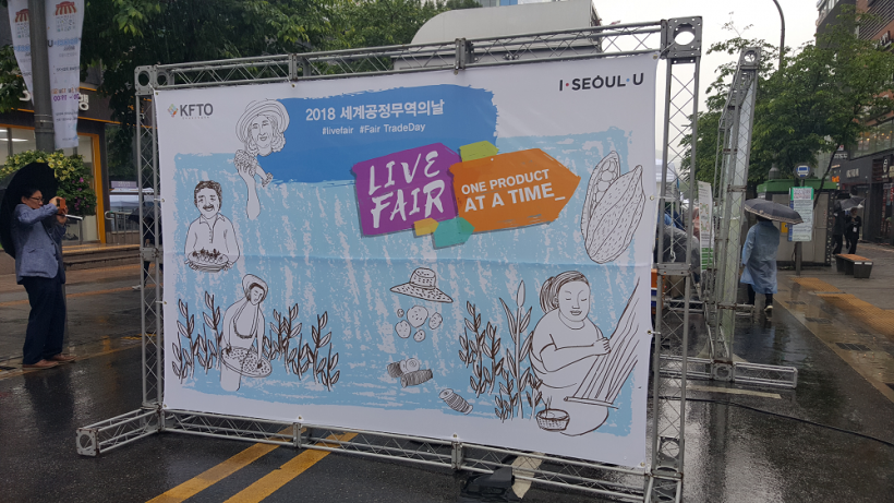 올해 공정무역의 날 행사는 날씨의 행운이 비껴갔나봅니다. 지난 몇 년간 5월 둘째 주 토요일은 항상 쾌청한 날씨 속에서 공정무역의 날 행사를 진행했었지만, 2018 공정무역의 날 행사는 지난 12일 토요일 신촌 로데오거리일대에서 하루 종일 비가 내리는 가운데 열렸습니다.