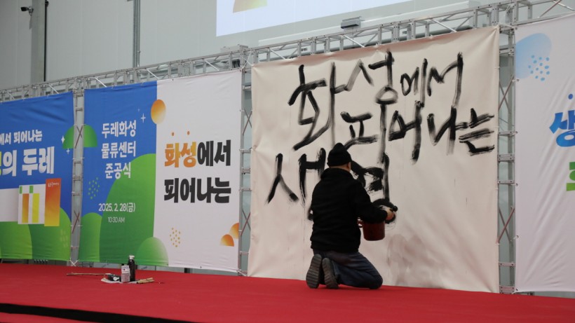 화성시의회 배정수 의장님과 화성특레시 조승문 제2부시장님의 축사와 김동연 경기도지사의 영상 축사에 이어, 유연복 화백의 붓글씨 퍼포먼스로 물류센터 준공 축하의 의미를 더했습니다.