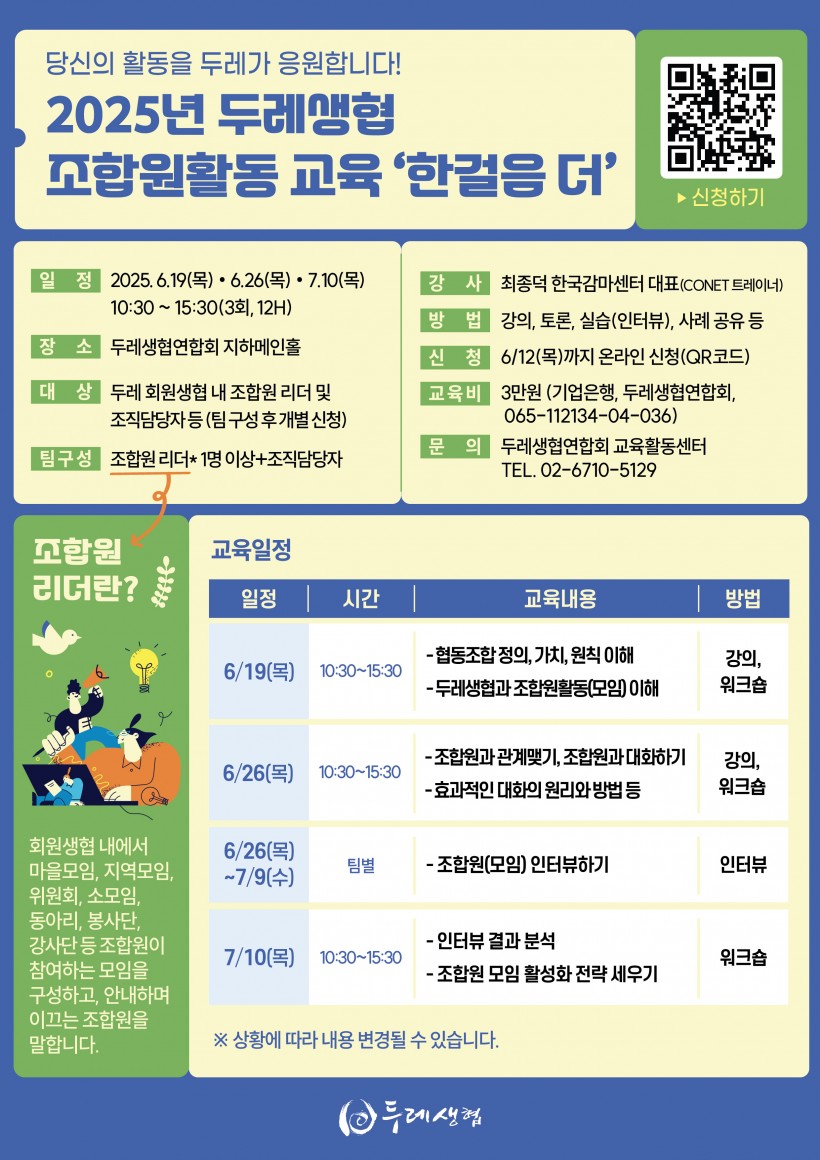 <2025년 두레생협 조합원활동 교육 ‘한걸음 더’> 안내