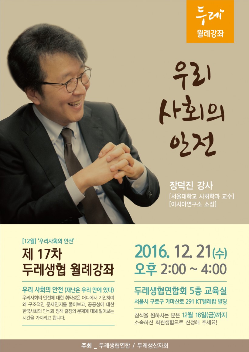 [공지]제17차 월례강좌 <재난은 우리 안에 있다> 안내 > 두레소식