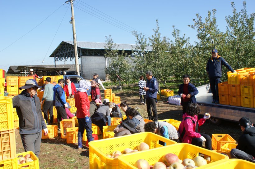 두레의성생산자회 故 정성수 생산자님 사과 수확 일손돕기