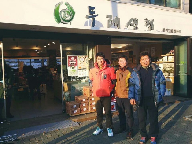 이 자리를 빌어, 두레생협 조합원과 함께 동고동락하며, 믿을 수 있고 안전한 사과를 공급하기 위해 애쓰셨던 故 정성수 생산자님의 명복을 빕니다. (사진 가운데 / 故 정성수 생산자님)
