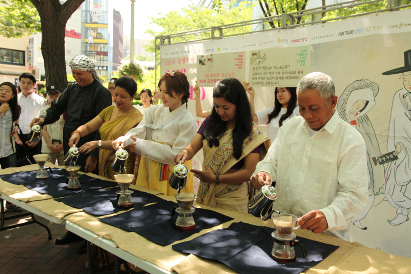 5월 둘째주 토요일은 바로 공정무역의 날! 지난 14일, 덕수궁 대한문에서부터 이어진 돌담길에서는 2016 공정무역의 날 행사가 열렸습니다. 다니엘 생산자를 포함한 공정무역 생산자들이 올해 공정무역 홍보대사인 레드벨벳의 웬디와 함께 공정무역 커피를 내리는 오프닝 행사를 시작으로 30여 개 공정무역단체가 참여한 공정무역 공식행사가 시작되었습니다.