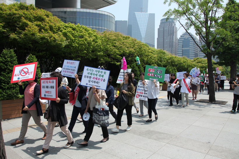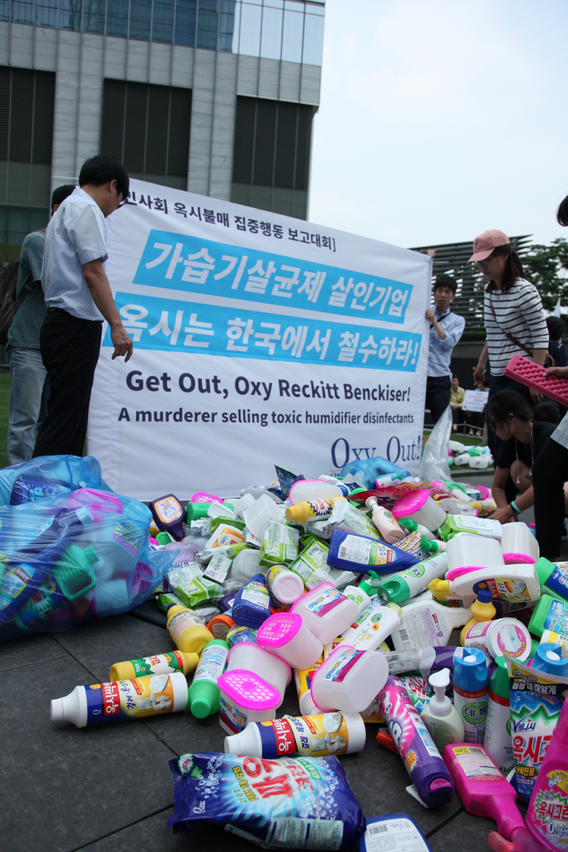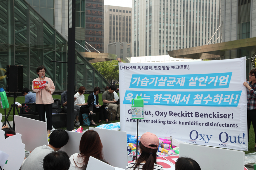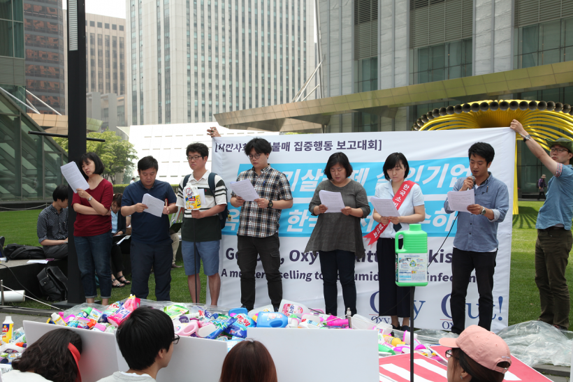 5월 옥시 불매운동 이후, 후속계획으로 옥시 퇴출과 가습기 살균제와 관련된 모든 가해기업의 처벌, 주무부처인 산업자원부 및 환경부에 대한 조사, 옥시 피해 구제법 제정, 징벌적 손해배상 및 집단소송법 제정, 제2의 옥시 사태 예방을 위한 살생물제 관리법 제정, 화평법 개정, 공산품법 개정 등을 진행할 것을 밝히는 선언문을 낭독한 뒤, 수거된 옥시 제품을 옥시 관계자에게 반환하는 퍼포먼스를 진행하였습니다.