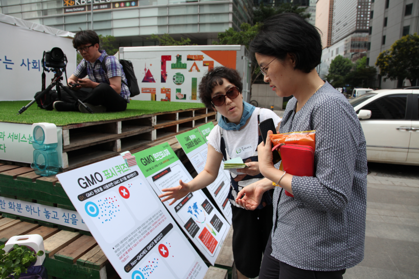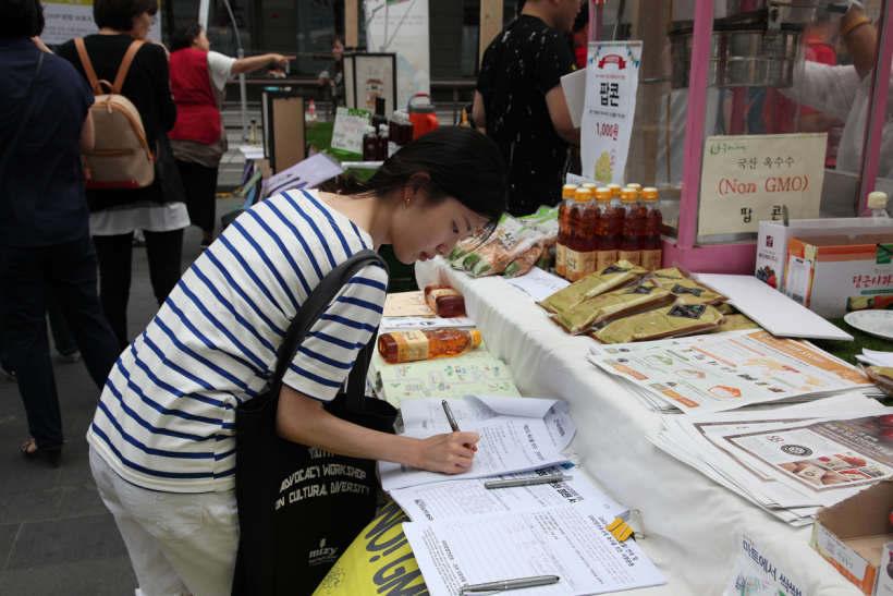 이와 함께, 제2의 옥시를 막기 위한 서명, 백남기 농민을 위한 청문회 청원 서명, GMO(유전자조작농산물) 반대 및 GMO완전표시제 촉구를 위한 서명도 받으며, 시민들의 목소리를 모아전달하기 위한 노력에 함께 참여하였습니다. 또한, 두레생협에서 제작한 GMO의 위험성과 GMO완전표시제의 필요성을 알리기 위한 판넬을 통해 시민들이 GMO에 대한 우리나라의 현황과 문제점을 인식하고 개선이 필요하다는 점을 알려드릴 수 있었습니다.