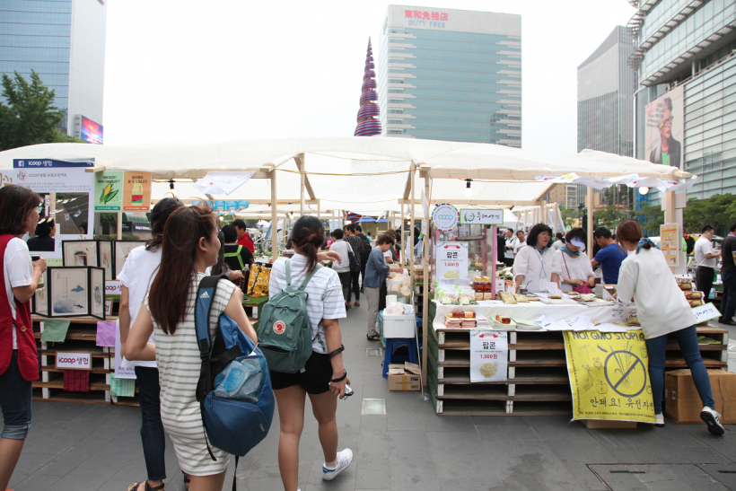 2016 서울 사회적경제 주간을 맞이하여, 지난 6월 27일부터 30일까지 서울 청계광장에서 다양한 행사와 전시가 열렸습니다. 두레생협에서도 서울지역 회원생협을 중심으로 홍보부스를 운영하였습니다. GMO로부터 안전한 국산 무농약 팝콘옥수수와 현미유로 만든 팝콘, 공정무역 생활재인 마스코바도, 첨가물이 없는 주스 등 두레생협의 생활재를 소개하여 많은 시민들에게 두레생협을 알렸습니다.