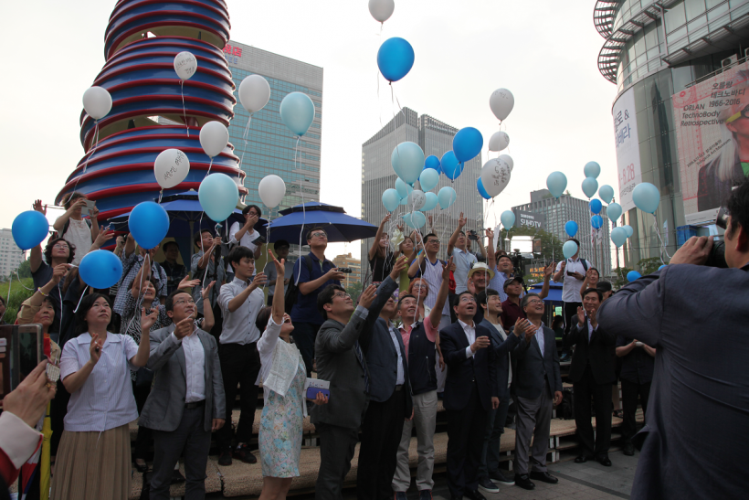 행사 3일째인 29일에는 박원순 서울시장이 참석한 가운데, 기념식이 열렸습니다. 서울시민들의 고민을 함께 읽으며, 사회적경제를 활용한 문제 해결을 모색하는 것이 필요하다고 말씀해주셨습니다. ‘사회적경제는 시민과 함께’ 라는 슬로건을 완성하는 퍼포먼스와 소망을 풍선에 담아 날리는 퍼포먼스까지 마친 후, 박원순 시장이 각 부스를 방문하여 응원하는 시간을 가졌습니다. 두레생협 부스에도 방문하여, GMO와 관련된 퀴즈에 참여하며 현행 GMO표시의 문제점을 확인하는 시간을 가졌습니다.
