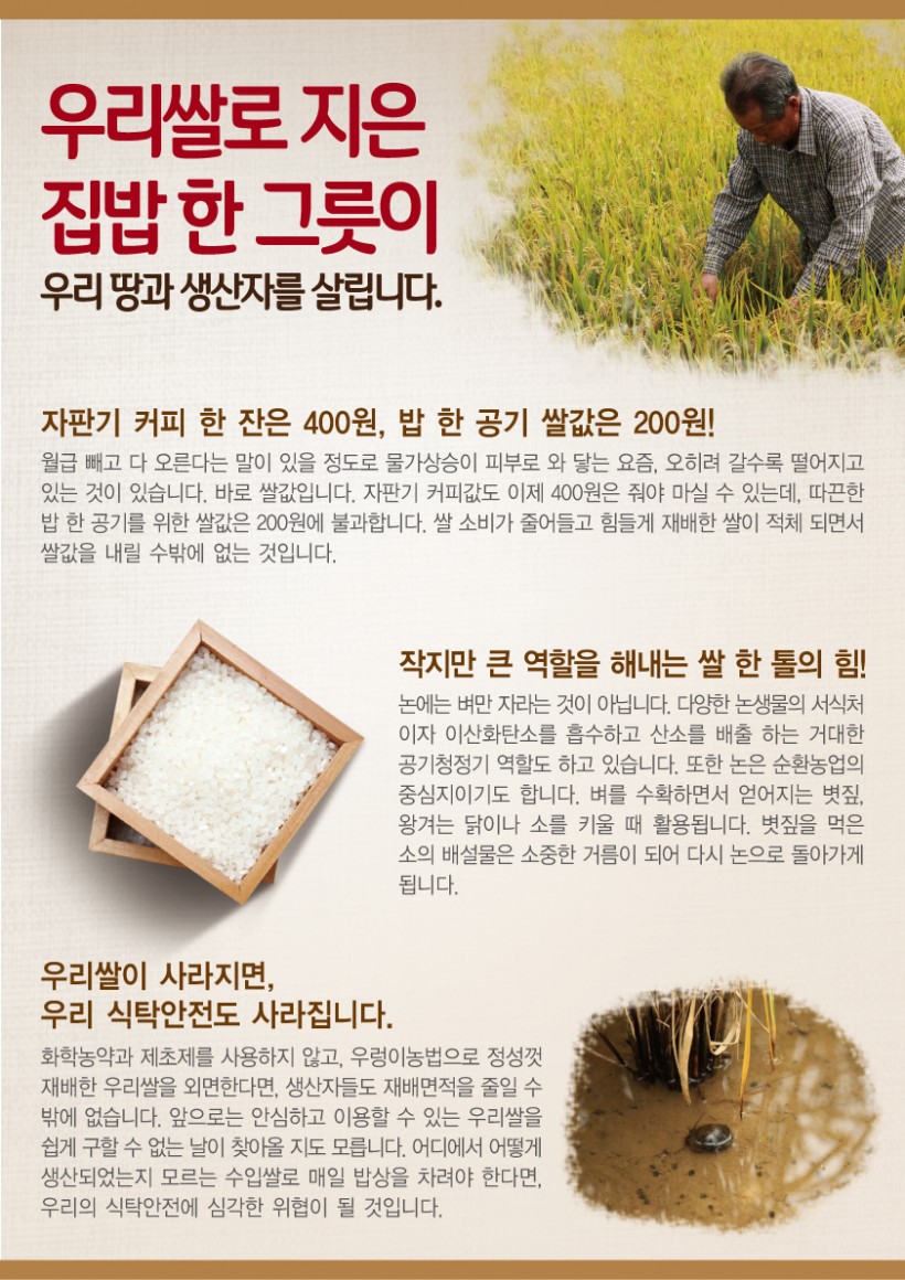 [쌀 소비 캠페인]우리쌀로 지은 집밥 한 그릇이 우리 땅과 생산자를 살립니다. 페이지 정보 작성자 두레지기 작성일16-07-25 15:11 조회31,533회 댓글0건 목록 본문 목록