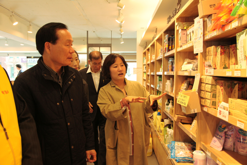 이번 홍보행사에는 의성생산자회 생산자와 더불어 의성군 김주수 군수님도 참석하셔서, 사과 판매현장과 생협 매장도 둘러보는 시간을 가졌습니다. 두레생협의 소비자 조합원과 생산자들이 서로 협력하고 상생하여, 믿을 수 있고 안전한 생활재를 유통하는 현장을 인상깊게 살펴보시면서, 앞으로 두레생협과 의성군 간 활발한 교류와 협력을 기대한다고 말씀하셨습니다.