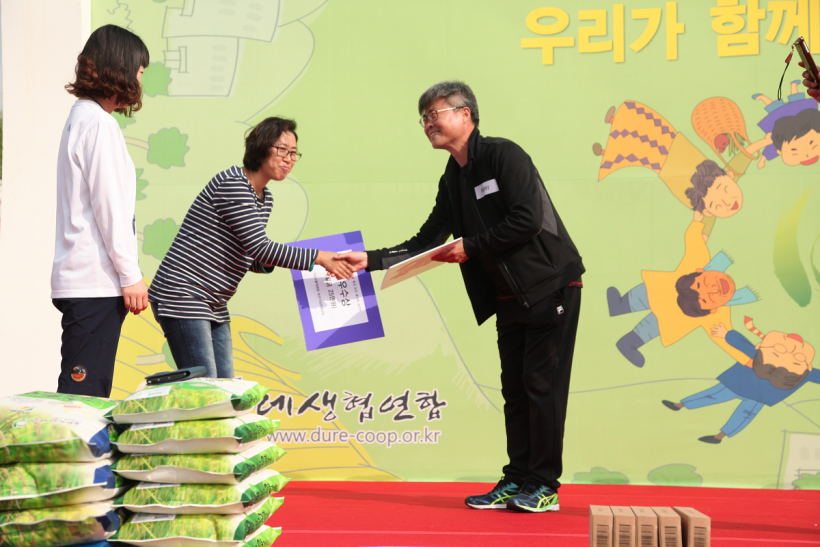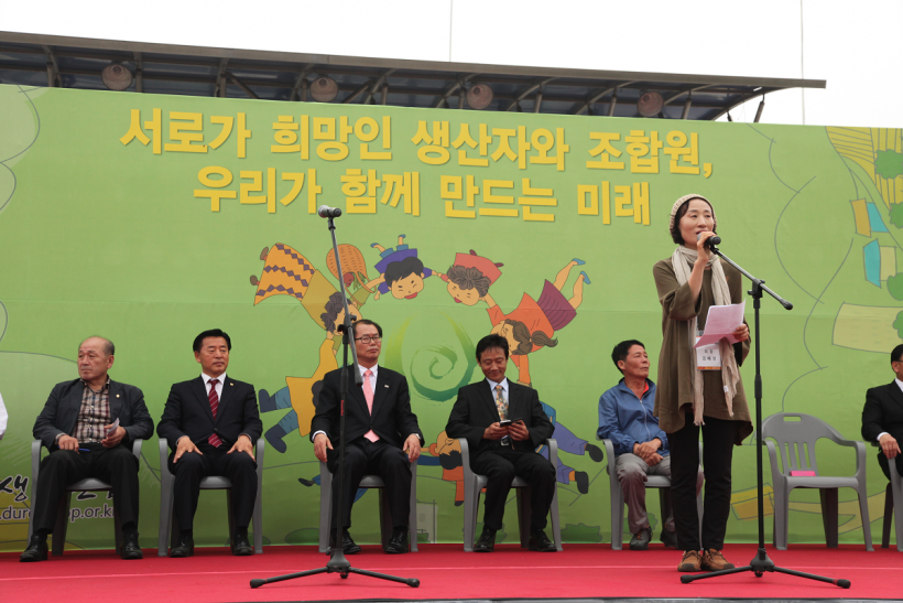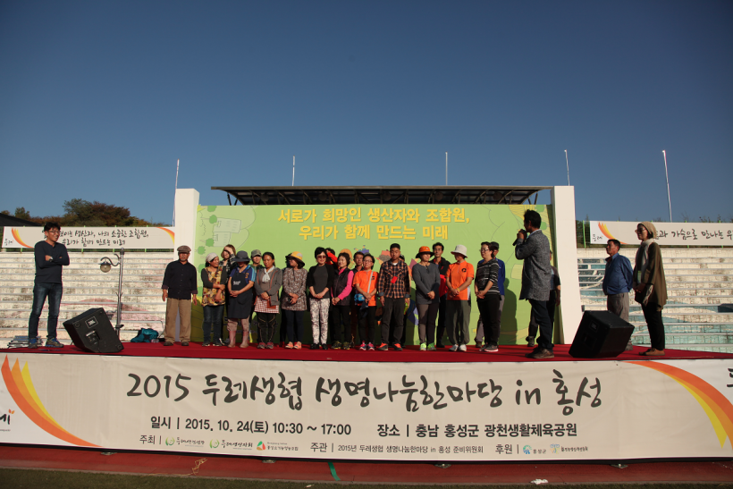 조합원과 생산자 간 교류의 장이자, 흥겨운 축제가 펼쳐졌던 2015 두레생협 생명나눔한마당은 홍성유기농 생산자 여러분과 정상진 대표의 인사로 마무리되었습니다.