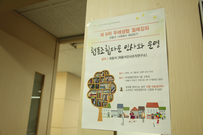 협동조합에 대해 배우기 좋은 10월의 어느 멋진 날, 제6차 월례강좌의 문이 열렸습니다. 이번 강의는 <협동조합다운 인사와 운영>이라는 주제로 최동석 소장님(최동석 경영연구소)을 모시고 진행되었습니다.