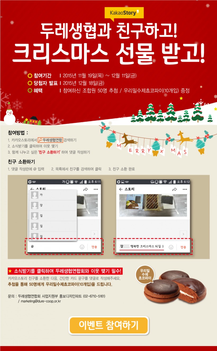 [이벤트]두레생협과 카카오스토리 친구하고! 크리스마스 선물 받고! > 두레소식