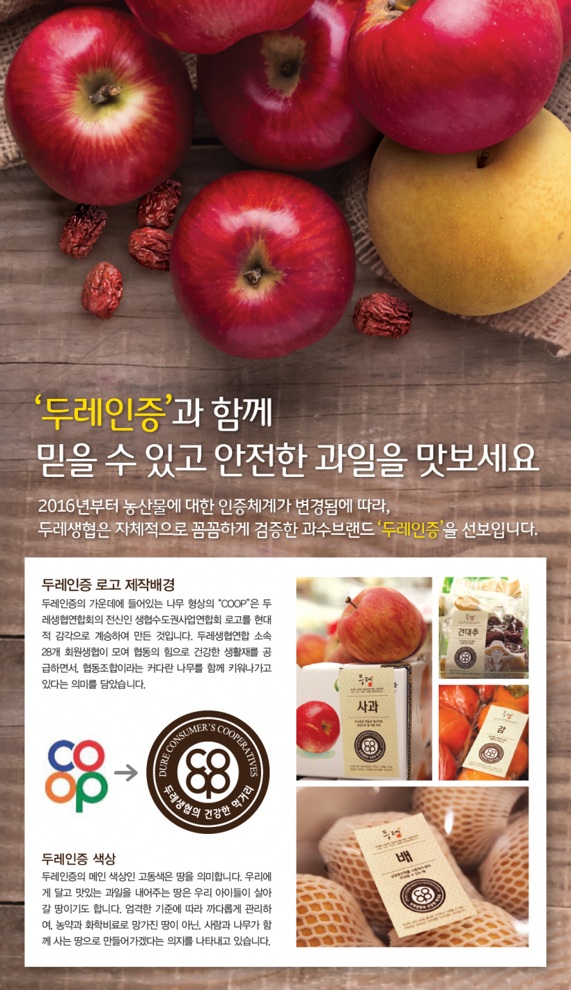 두레생협의 새로운 과수브랜드 '두레인증'을 만나보세요!