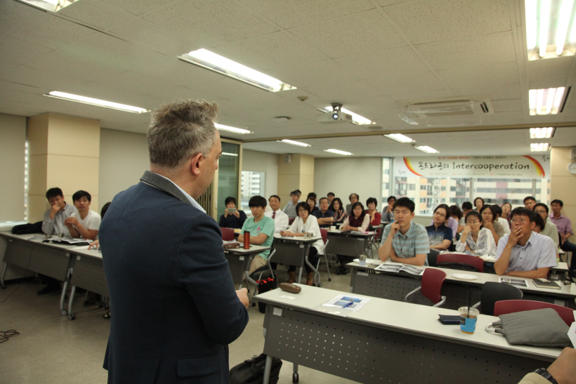가을을 재촉하는 선선한 바람이 불어오는 9월의 마지막 날, 두레생협 제5차 월례강좌가 열렸습니다. 이번 강좌는 몬드라곤대학교 경영대학 국제협력과 후안호 마르틴 주임교수님을 모시고, 몬드라곤의 가장 큰 특징이자 성장동력으로 손꼽히는 Intercooperation에 대한 강의를 진행하였습니다.