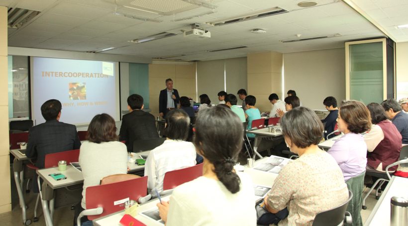 강의 제목이기도 한 intercooperation이란 개념은 번역이 어렵지만, 협동조합 간의 연대와 합작으로 해석할 수 있으며, 무엇보다도 상호 신뢰 속에서 각 협동조합의 어려움을 함께 극복할 수 있도록 조건없이 서로 돕는 연대의식이 밑바탕에 깔려 있다고 강조하였습니다.