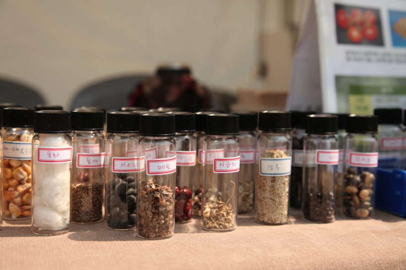 두 번째 부스에서는 점차 사라지고 있는 우리 토종종자에 대한 관심을 높이기 위해, 다양한 토종종자를 전시하였습니다. 서리콩이나 메밀, 들깨, 시금치, 상후, 강낭콩, 옥수수 등 평소 많이 접하지만 개량된 종자로 키운 농산물만 보다가, 작고 울퉁불퉁하지만 알찬 우리 토종종자 20여 종을 직접 보고 비교할 수 있는 시간을 마련하였습니다.
