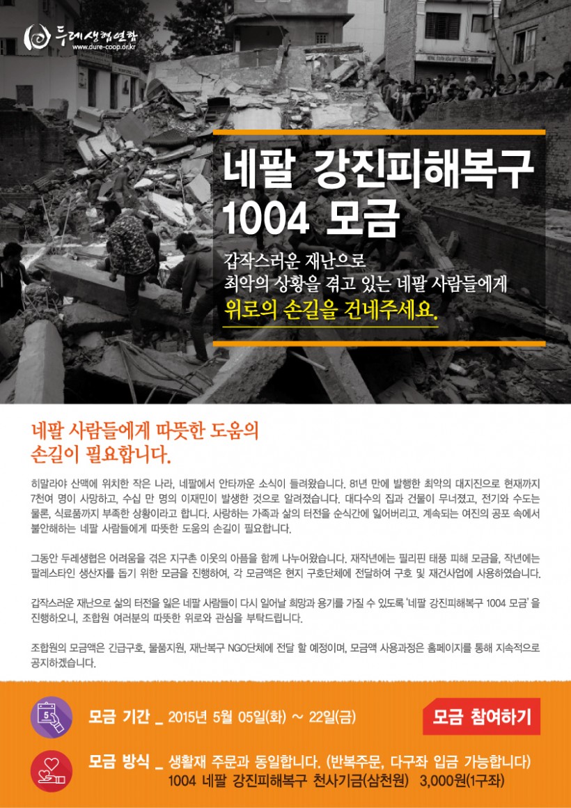 [공지] 네팔 강진피해복구 1004 모금 > 두레소식