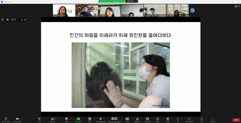 강의를 준비하면서 ‘그래서 우리가 유인원 활동을 하게 되었구나’라는 생각이 들었다고 하셨는데, 참가자들 또한 강의를 들으며 생태계 속에서 서로 연결되어 있고 영향을 주고받는 관계에 대해 되돌아보는 시간이었습니다. 강의를 다 듣고 나서는 ‘유인원 필드스테이션’을 방문하여 현장의 생동감을 느껴보고 싶다는 열의도 생겼습니다!!!