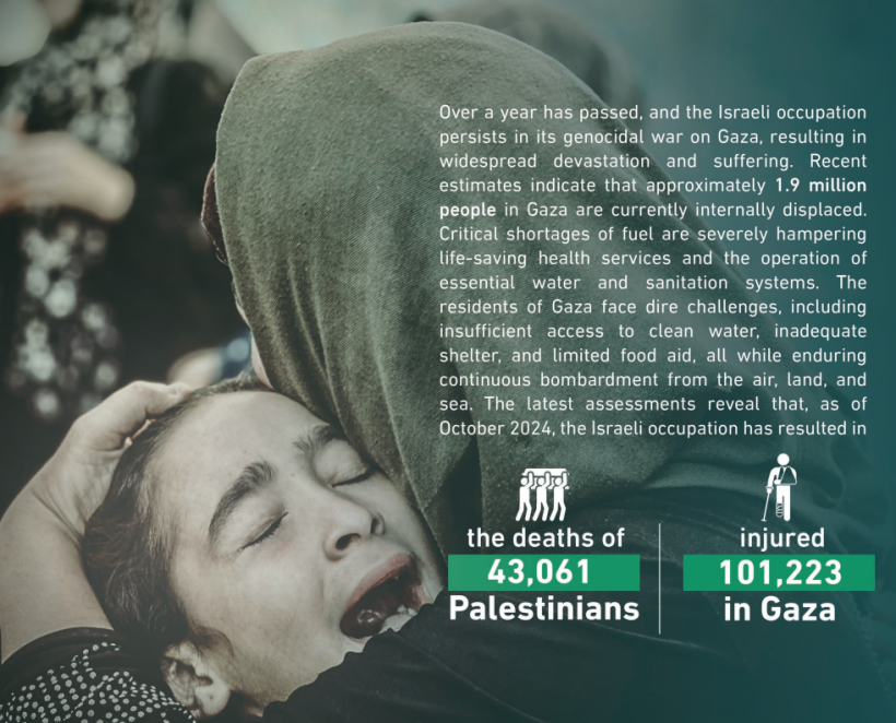 이스라엘 점령이 계속되는 가운데 가자 지구는 엄청난 파괴와 고통을 겪고 있습니다. 최근 추산에 따르면 약 190만 명의 가자 지구 주민들이 내부적으로 난민이 되었습니다. 심각한 연료 부족이 생명을 구하는 보건 서비스와 필수적인 물과 위생 시스템 운영에 큰 타격을 주고 있습니다. 주민들은 깨끗한 물, 적절한 주거지, 제한된 식량 지원 부족 속에서 공습과 지상 및 해상 공격을 지속적으로 견뎌내고 있습니다.