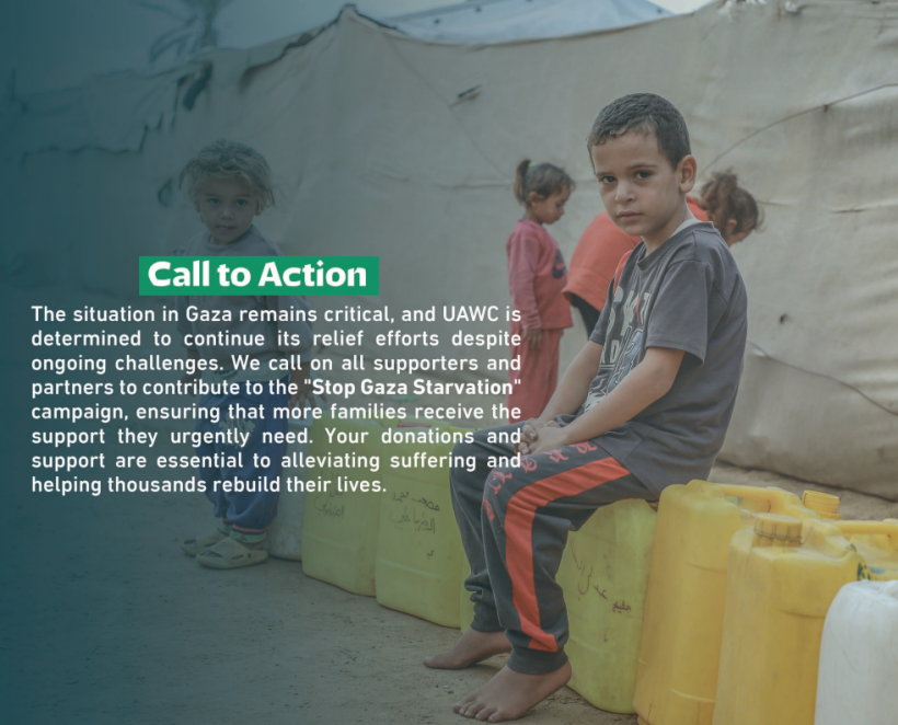 UAWC는 2024년 7월 보고된 주요 활동을 기반으로 인도주의적 노력을 가자 지구 전역으로 확장했습니다. 이스라엘의 계속되는 공격, 봉쇄, 필수 자원의 부족에도 불구하고, “STOP GAZA STARVATION” 캠페인은 어려움에 처한 가족들을 지원하기 위한 헌신을 지속하고 있습니다. UAWC는 생계를 유지하고, 난민 가정을 지원하며, 긴급한 필요를 해결하기 위한 다양한 활동을 시작했습니다.