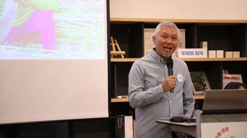 세 번째 발제는 ATPI 레이 테네프란시아 대표님의 <민중교역으로 시작한 필리핀 생산자의 꿈>이었습니다. 레이 대표님은 네그로스에 대해 소개하고, 현재 민중교역을 통해 이루어진 발전과 요즘 진행하고 있는 작물다각화와 같은 지속가능한 농업에 대한 노력, 그리고 두레생협과 민중교역기금을 통해 진행하고 있는 바르크프로젝트 4기에 대해 소개했습니다.