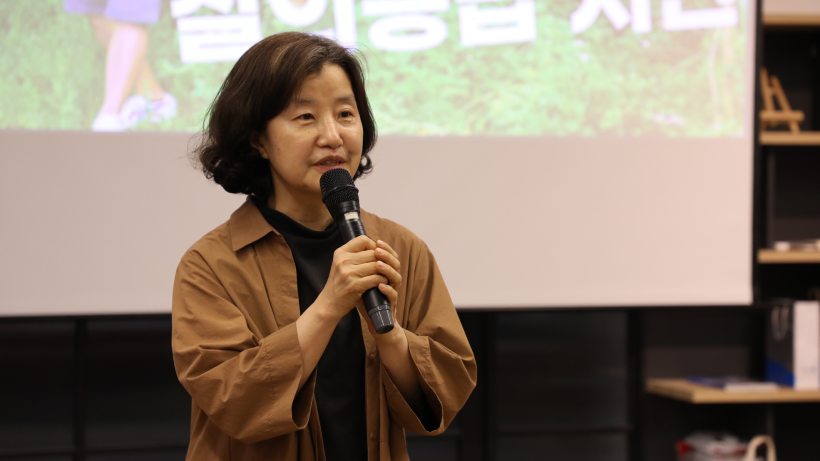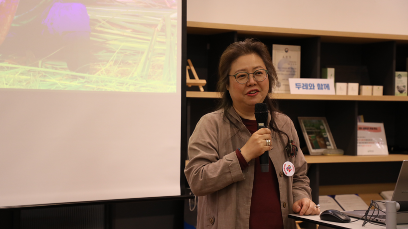 네 번째 발제는 고양파주두레생협 이수정 민중교역 활동가님의 <마스코바도, 올리브유 너머 생산자와 이어지다>였습니다. 이수정 활동가님은 자신이 마스코바도를 통해 처음 민중교역에 대해 알게 되었을 때부터 민중교역 활동가가 되어 활동하기 시작한 때, 그리고 지금까지의 시간을 이야기하며 이를 통해 느끼고 깨달은 것들을 공유했습니다. 두레생협 민중교역의 가치를 보여주는 발제였습니다.