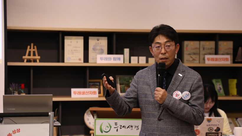두 번째 발제는 두레생협연합회 최현호 상무님의 <두레생협 민중교역 20년 성과와 과제>였습니다. 최현호 상무님은 어떻게 두레생협이 민중교역을 시작했는지 그 과정을 이야기하며, 민중교역의 의의와 가치, 두레생협이 민중교역을 통해 만들어 나가고자 하는 것과 그 성과, 그리고 앞으로의 20년에 대한 상상에 대해서 발표했습니다.
