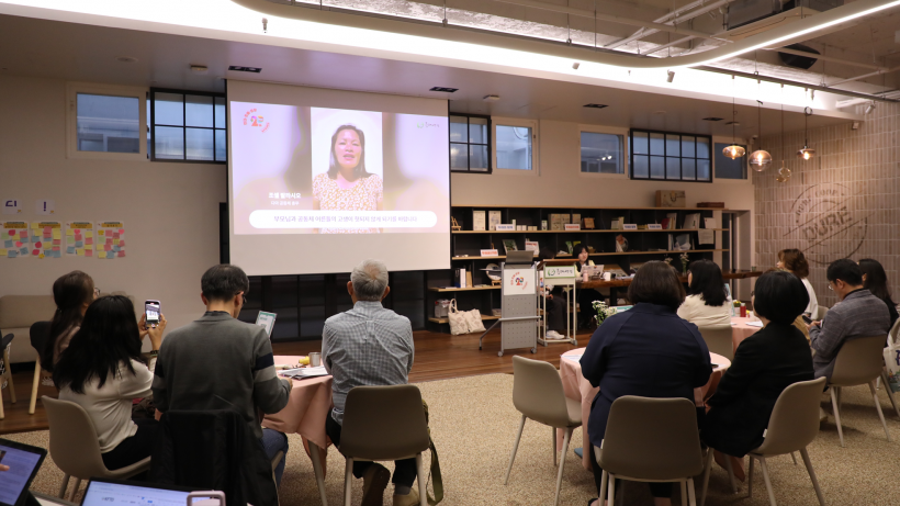 이어서 다마 공동체 조셀 팔라시오 총무님이 영상으로 전하는 <민중교역 마스코바도로 시작한 다마의 꿈>을 시청했습니다. 두레생협과의 민중교역을 통해 두레생협과 그동안 나눈 교류와 민중교역으로 인해 다마 공동체가 어떻게 발전했는지 알 수 있는 영상이었습니다.